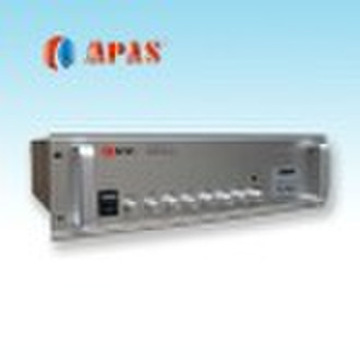 Micro computer chip control, Light -touch button 5 Mic inputs, 3 Aux inputs, 2 priority inputs, 2priority input Individual volume control, Master tone control Chime and mute function A five--element LED level meter for monitoring output level